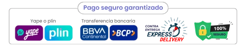 Paga con tarjeta, transferencia, contra entrega, yape, plin.